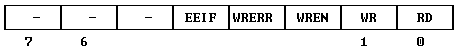 Кристалл PIC16C84 имеет пять битов конфигурации, которые хранятся в EEPROM и устанавливаются на этапе программирования кристалла. Эти биты могут быть запрограммированы (читается как `0`) или оставлены не- запрограммироваными (читается `1`) для выбора подходящего варианта конфигурации устройства. Эти биты расположены в EEPROM памяти по адресу 2007h. Пользователю следует помнить, что этот адрес находится ниже области кодов и недоступен программе. Ячейка EEPROM конфигурации.