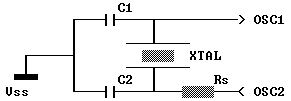 Более высокая емкость будет увеличивать стабильность генератора, но также будет увеличивать время запуска. Значения приведены для ориентировки. В режимах HS и XT, чтобы избежать гармоник может потребоваться последовательный резистор Rs.