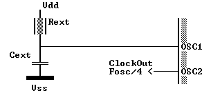 Кристаллы PIC16... могут также тактироваться и от внешних источников. Генератор, построенный на кварцевых или керамических резонаторах, требует периода стабилизации после включения питания. Для этого, встроенный таймер запуска генератора держит устройство в состоянии сброса примерн  18 мс после того, как сигнал на /MCLR ножке кристалла достигнет уровня логической единицы. Таким образом, внешняя цепочка RC , связанная с н  кой /MCLR во многих случаях не требуется.