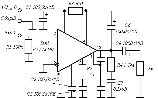 Типовая схема включения ИМС К174УН9