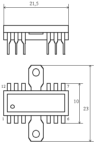 Микросхема представляет собой усилитель мощности звуковой частоты с номинальной выходной мощность 5,0 Вт на нагрузку 4 Ом. В состав микросхемы входят предварительный усилитель; выходной каскад; защиту выхода от коротких замыканий и перегрузки по току; стабилизатор тока. Аналог микросхемы TСA940 (функциональный аналог). Содержит 140 интегральных элементов. Конструктивно оформлена в корпусе типа 2104.12-1. Масса не более 2,5 гр.