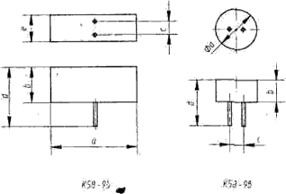 Номинальное напряжение ионистора зависит от вида используемого в нем электролита и является для него максимально допустимым. Для получения более высокого рабочего напряжения ионисторы соединяют последовательно. Но делать это самостоятельно не рекомендуется - параметры ионисторов в такой связке должны быть очень близкими. Внутреннее сопротивление Rвн ионистора может быть рассчитано по формуле: Rвн=U/Iкз, где Rвн - в омах; U - напряжение на ионисторе, В; Iкз - ток короткого замыкания, А. Для ионистора К58-3 (японский аналог DC-2R4D225) Rвн=10...100 Ом. Электрическую емкость ионистора рассчитывают по формуле: C=I·t/U , где С - емкость, Ф; I - постоянный ток разрядки, А; U - номинальное напряжение ионистора, В; t - время разрядки от Uном до нуля, с; Важнейший параметр ионистора - ток утечки. Особенно при использовании его в качестве резервного источника питания. Габариты некоторых ионисторов, выпускаемых в России, показаны на рисунке выше. Ионистор К58-9а представляет собой залитый компаундом ионистор К58-3 с приваренными проволочными выводами («+» маркирован черной точкой). Ионисторы К58-96 и К58-9в (японский аналог DB-5R5D105) на напряжение 5 и 6,3 В состоят, соответственно, из двух и трех соединенных последовательно ионисторов К58-3. В принципе ионистор - неполярный прибор. Вывод «+» указывают для обозначения полярности остаточного напряжения после его зарядки на заводе изготовителе. Основные характеристики отечественных ионисторов приведены в таблице. Их рабочие температуры - -25...+70°С; отклонения емкости от номинальной - -20...+80%.