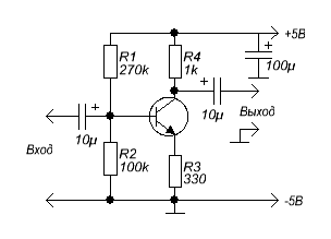 На коллекторе подбором R1 выставить 2,8 вольт. Но лучше питание поднять до 9 вольт и выставить на коллекторе 5 вольт.