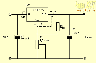 Хочу обратить особое внимание на то, что хотя LM317 и является полным функциональным аналогом КРЕН12А, расположение выводов у этих микросхем НЕ СОВПАДАЕТ!