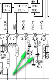 Евгений, значит искать в задающем строчной развёртки, более подробно позже из дома.