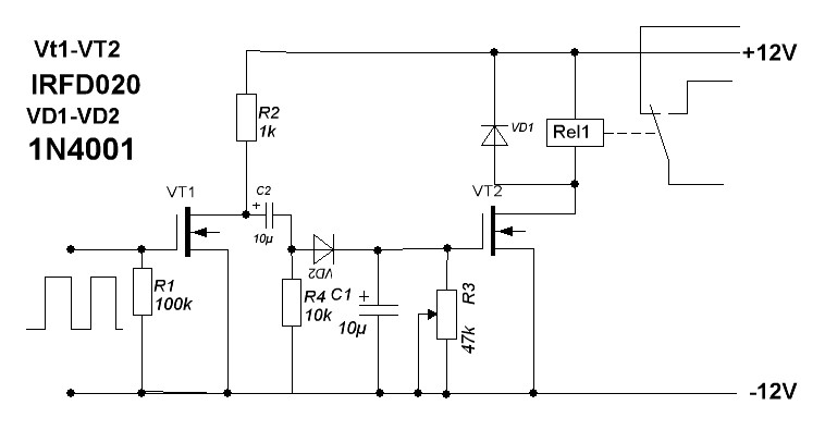случае. Можно мереть частоту потом её сравнивать с заданной и принимать решение - включать реле или нет, а можно и просто используя схему smoker включать реле, что значительно проще. Собственно и я хотел описать аналогичную схему. Вот только с рисованием у меня проблемы. Наверняка есть и другие решения.