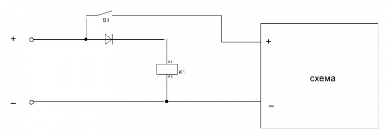 реле срабатывает и отключает питание на схему... :silly: - как то так?