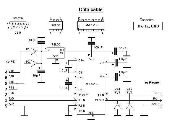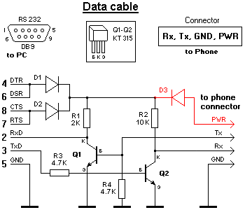 Первым делом я нашел распиновку выводов телефона и СОМ порта: