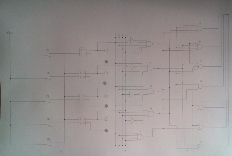 Помогите, пожалуйста, решить задачу: Разработать электрическую схему с использованием микроконтроллера Atiny 2313, а так же написать программу для него, позволяющую вывести на экран семисегментного индикатора номер поврежденного присоединения. Если обрыва нет, то на индикаторе должен отображаться 0. Номера соединений: 1,2,3,8,9. Ниже есть схема которую я сделал по похожему заданию (не было микроконтроллера) и еще препод хотя бы что-то объяснял. А микроконтроллеры не объяснял. Может схема как-то поможет. Заранее благодарен за помощь. :-)