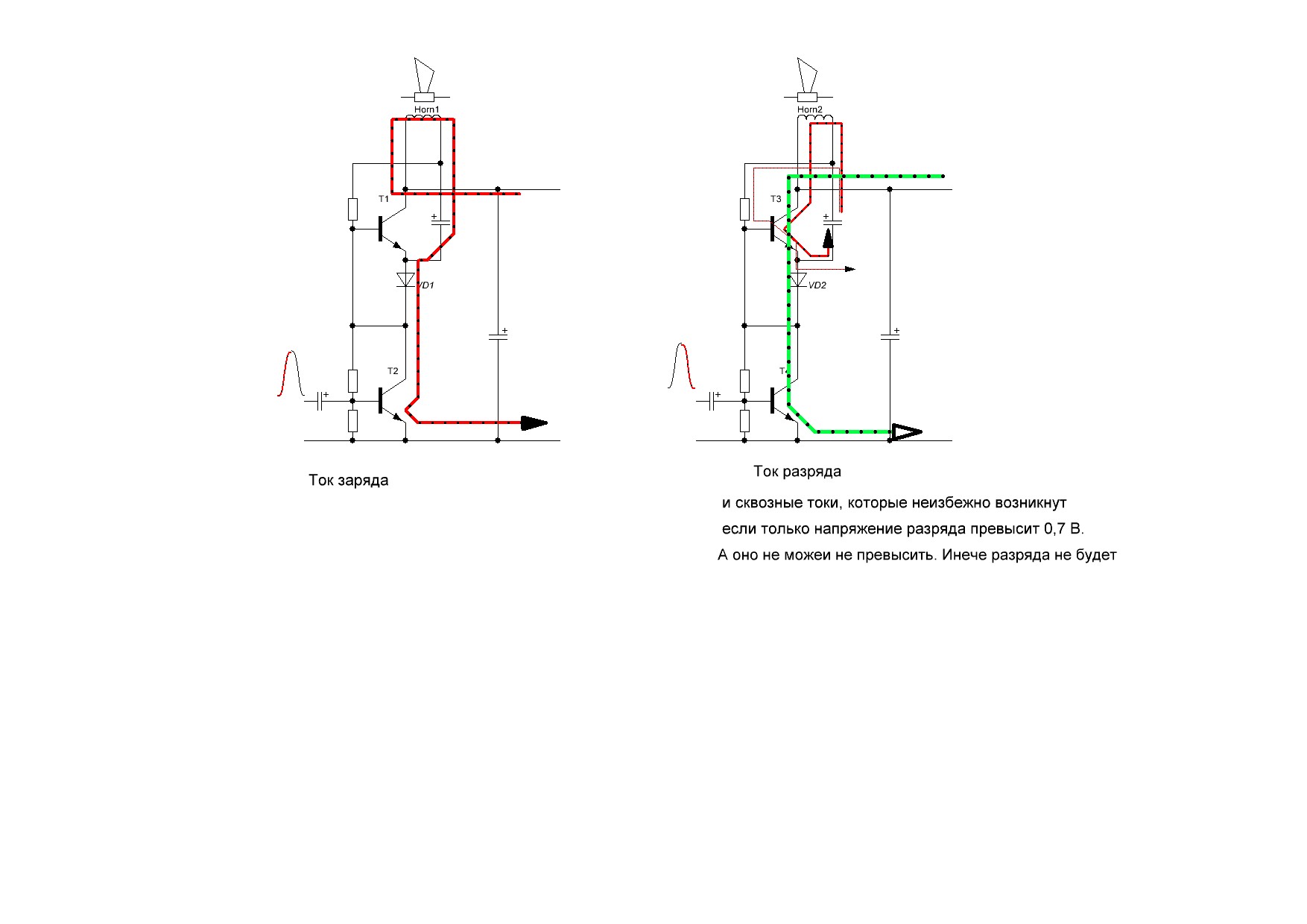 Пробовал начертить предполагаемые осциллограммы - там такая ерунда с зарядом и разрядом да ещё + ступенька, в общем жуть. Бросил - терпения не хватило, да и утро опять, блин, приближается.