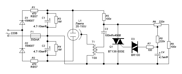 я на ту первую уже забил и сделал вот эту последнюю( image001.jpg). Хорошо работает. Только лампу, которая в схеме, нигде не найти - поставил ИФК-120. Частота вспышек получилась 2,4 - 4 Гц. Входные резисторы по 5 ватт стоят но вскоре заменю их на 10 ватт, так как после 3-х минут работы сильно греются.
