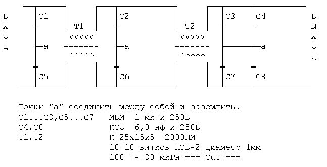 tomas111, ну так это же обычная комбинация из трех конденсаторов (два одинаковых поменьше и один побольше) и двухобмоточного дросселя, которая есть в любом достойном внимания импульсном БП.