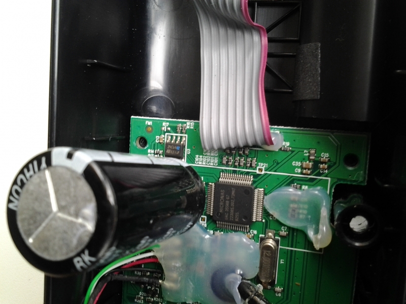 А палец при этом вы держали на шиле или пинцете? Тогда нужно название микросхемы к которой подключается конденсатор С43. По идее это должен быть УНЧ. Возможно его блокирует контроллер. Нужно смотреть даташит.