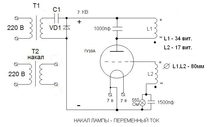 Генератор на лампе ГУ10А