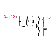Вопрос ко всем, кто разбирается в передатчиках. Вот схему генератора срисовал с буржуйского раиомикрофона. Сам радиомикрофон работает от одной пальчиковой батарейки и пробивает 500 метров на частоте 130 мГц весь секрет в том, что в схеме стоит преобразователь напряжения на 9 вольт ну и микрофонный усилитель. Короче вопрос к схеме самого генератора: минуя преобразователь я подаю питание на генератор от 2,5 до 12 вольт - частота стоит мёртво! Кварца нет и никакого ухода частоты относительно антенны и предметов - тоже нет. Откуда берётся стабилизация? В схеме частоту задаёт L1 , а спектр частоты C1, тем не менее антенный выход идет с коллектора. ?