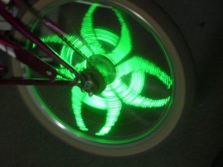 Каждый, наверное, держал в руках лазерную указку и рисовал её лучом фигуры на стене или листе бумаги. Казалось бы, луч один, а может рисовать полосы или круги. Всё дело в том, что человеческий глаз фиксирует быстро сменяющиеся детали как единое целое. Например, по телевизору нам показывают 24 кадра в секунду, а мы видим движущееся изображение. Используя эту способность зрения, можно создать интересное устройство, которое при езде на велосипеде будет рисовать светодиодами различные картинки. Представим себе, что мы укрепили на спицу колеса светодиод и включили его. При езде мы увидим, что на нашем колесе светится ровный круг. А если этих светодиодов будет, скажем примерно 30 штук, да все они будут светиться по записанной программе? Получится нечто необычное и красивое. К тому же езда на велосипеде, оснащённом такой схемой, более безопасна, потому что велосипед со светящимися колёсами видно издалека. Тут только и смотри в оба, чтобы самому не задеть шокированного пешехода, удивлённо уставившегося на тебя с раскрытым ртом. Но всё это так, лирическое вступление. А реально я такую схему уже сделал, и она успешно работает у многих пацанов из нашего двора. Для тех, кто умеет держать в руках паяльник, собрать себе такое устройство не составит труда.
