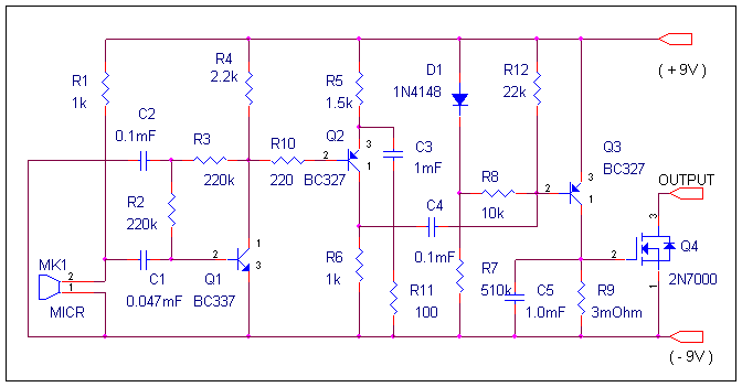 Схема представленная на рисунке выше выгодно отличается от традиционных подобных устройств, основным недостатком которых является неспособность различить голос и шум. Это приводит к ложным срабатываниям. Эта схема в значительной степени лишена подобных недостатков. Схема также отличается простотой и применением стандартных деталей. Частотная характеристика и коэффициэнт усиления микрофонного усилителя могут быть изменены в широких пределах. Чувствительность регулируется номиналом резистора R1, порог срабатывания изменением R10, R7. Чувствительность речевой активации зависит также от типа электретного микрофона. Диапазон исполнительных устройств для использования активатора очень широк - от малогабаритных передатчиков в системах контроля (как коммутатор управляемый голосом), шумоподавитель в УКВ ЧМ приёмниках до автоматических выключателей освещения.