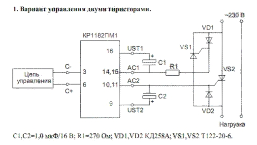 1. Вариант управления двумя тиристорами.