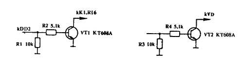 Элементы DD2 и DD3 ≈ согласующие, но можно обойтись и без них, поменяв входы DA1 и DA2. Сигналы с DD2 и DD3 через резисторы подаются на коммутатор DD4. Вместо довольно редкой сборки K1109KT2 можно применить транзисторы с изменениями схемы, показанными на рис.2.