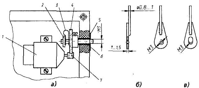 Серьгу сцепа вала редуктора с тягой пружины можно выполнить по варианту, показанному на рис. 107, б. В этом случае в крышке корпуса должно быть сделано отверстие диаметром около 25 мм (его место на рис.105 отмечено стрелкой А), через которое, вращая большую шестерню редуктора пальцем, ввинчивают конец его вала в серьгу. Это сцепка очень высокой надежности, она не подвержена практически никаким посторонним воздействиям. По другому варианту (рис. 107, в) серьгу, резьба в которой сохранена лишь в нижней
