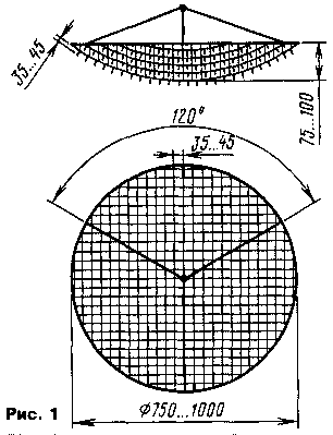 К ободу "люстры" через 120° прикреплены три медных провода диаметром 0,8...1 мм, которые спаяны вместе над центром обода. К этой точке подводится высокое напряжение. За эту же точку "люстра" крепится с помощью рыболовной лески диаметром 0,5...0,8 мм к потолку или кронштейну на расстоянии не менее 150 мм.