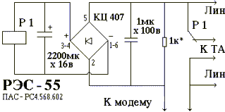 также и минусы, такие как: сопротивление при коммутации, "прозвонку" на параллельных аппаратах и обычно с соблюдением полярности. Приведенная схема устранена от перечисленных недостатков. Задержка коммутации, при использование данных схемы, составляет примерно около 1 сек, благодаря использованию реле уменьшено также сопротивление соединения, соблюдение полярности не требуется. Блокиратор можно расположить в любом месте телефонной линии, сделав нечто вроде распределителя. Реле лучше применять герконовое (из-за своей бесшумности) на 5-7 вольт, но возможно потребуется регулировка резистора, а в качестве диодного моста можно использовать 4 диода КД522Б. >