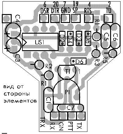 Весь радиомодем монтируется внутри пластикового корпуса переходника HD25/HD9 (мама-папа) с использованием печатной платы на рисунках сверху.