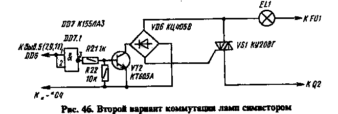 Второй вариант симисторного узла коммутации представлен на рис. 46.