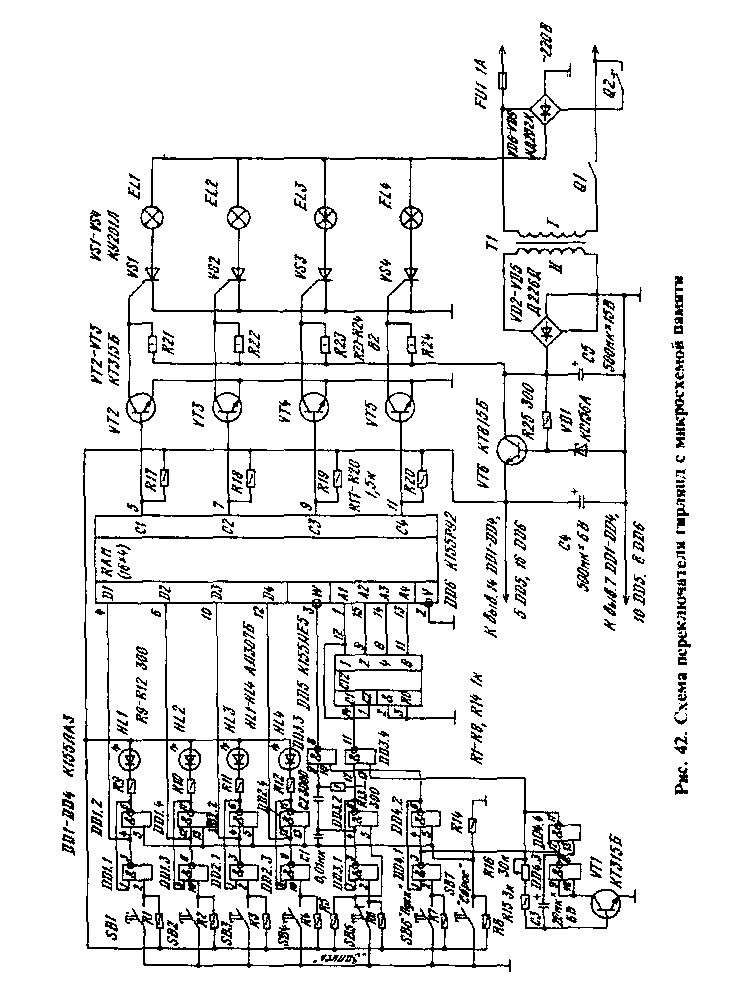 На рис. 42 приведена схема переключателя гирлянд, отвечающего этим условиям.