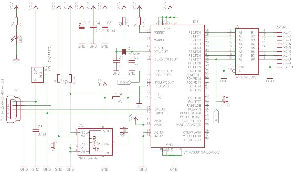 Основаой разработки являеться контроллер CY7C68013A широко известный на просторах интернетов.