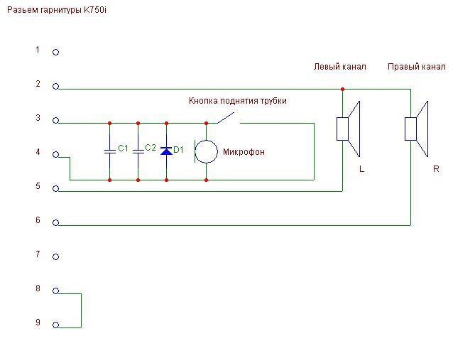 Схема оригинальной гарнитуры