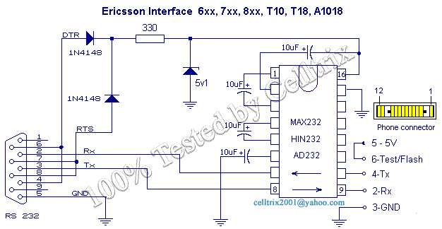 Схема интерфейсного шнура для Ericsson 218/318/337/388