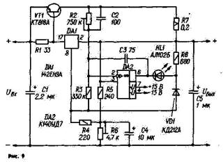 закрывается, напряжение на выводе 8 DA1, а следовательно, и на выходе