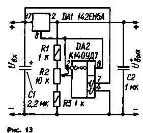 схеме, изображенной на рис. 12. Как видно, микросхема DA1 включена по