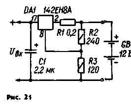 рис. 20. Выходной ток регулируют изменением сопротивления резистора R1,