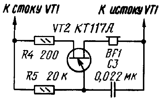 Остается добавить, что для слаботочных нагрузок в блок питания можно ввести ограничитель тока КЗ на полевом транзисторе КП302В. При выборе транзистора для других блоков следует учитывать его допустимую мощность и