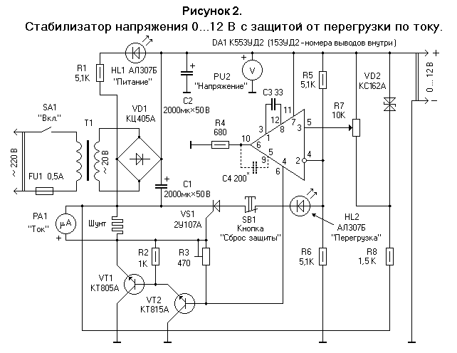 Регулироемый БП с защитой от перегрузки по току