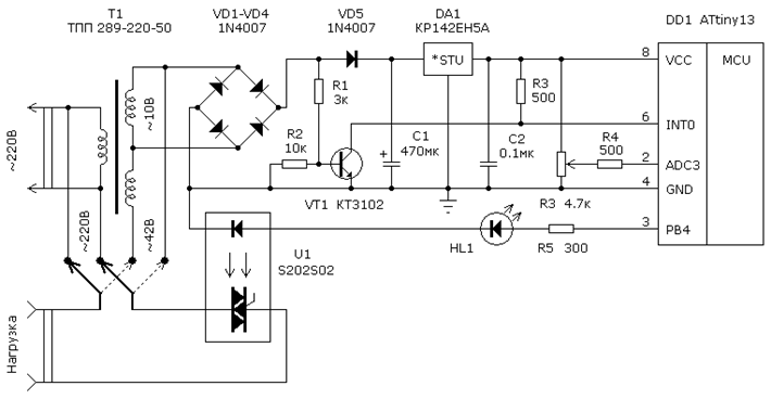 - управление симистором (функция void open_simistor (void));