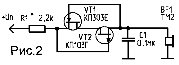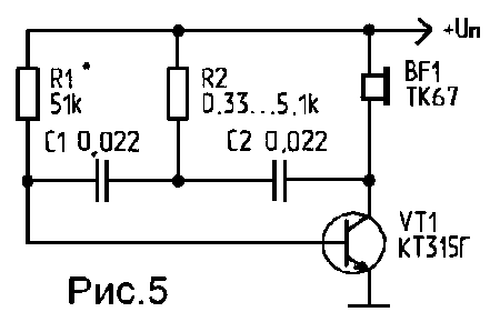 частотозадающего конденсатора использован пьезокерамический капсюль