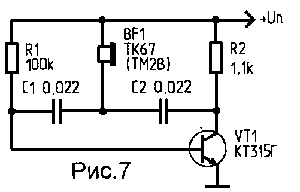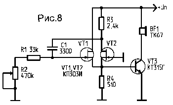 Звуковой генератор может быть выполнен и по схеме, приведенной на рис.7.