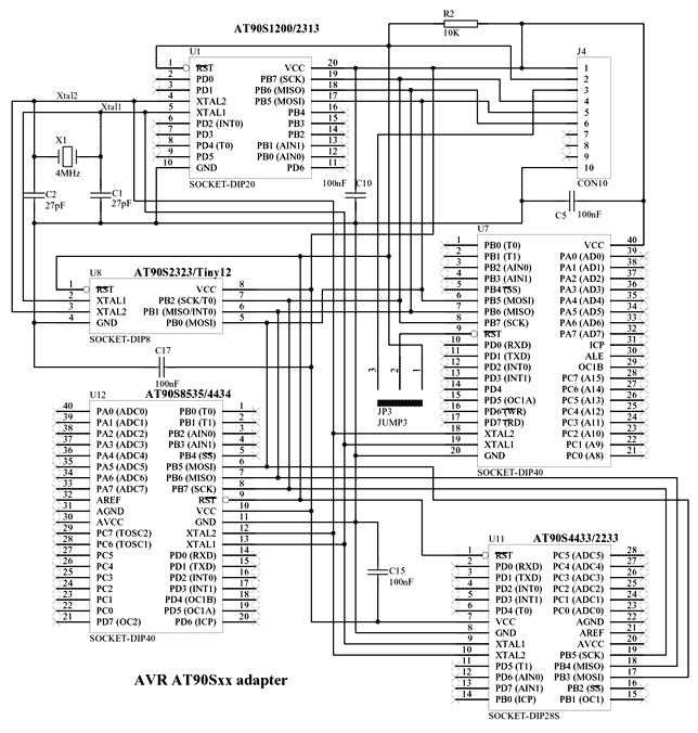 микроконтроллеров AVR (AT90S2323, AT90S2343,