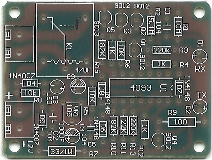 3) .Delay схема: R5, VR1, C3 составляют схему задержки, настроить VR1 можно настроить время задержки после каждого действия, время задержки расчета цепи регулируется от 0-40S снова, потому что есть некоторые параметры компонентов ошибке, так время задержки время будет немного отличаться.