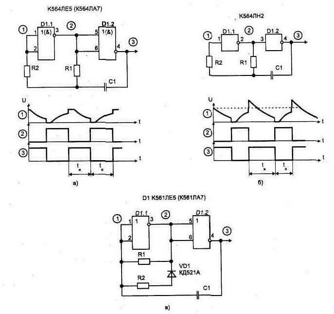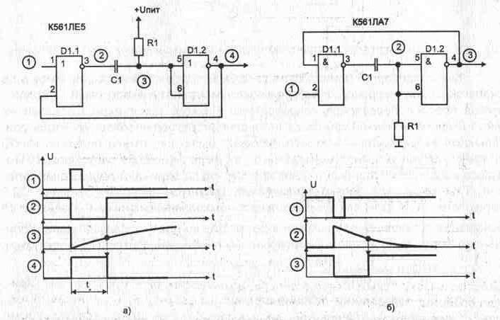 Рис. 1.18 Одновибраторы с двумя времязадающими цепями