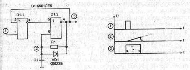 Особенности микросхем, работающих в режиме микротоковВ системах передачи информации для ослабления влияния случайных флуктуаций, а также для управления в устройствах автоматики нередко требуется из коротких импульсов получать более широкие, определенной длительности.