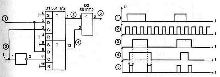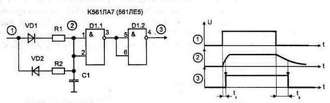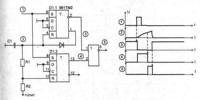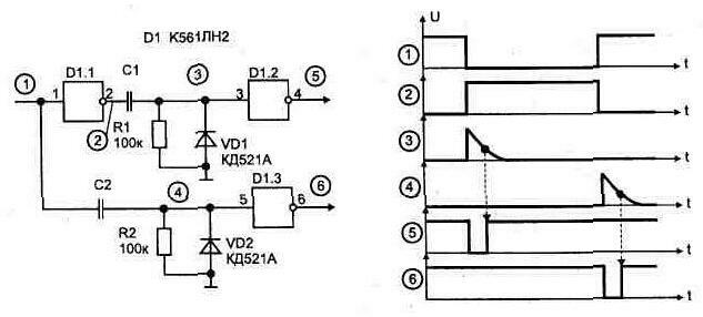 Рис. 1.53. Формирователь импульсов по переднему и заднему