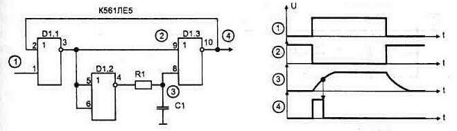Рис. 1.51. Формирователь импульса по фронту сигнала Рис. 1 52. Формироватеть пмпульса