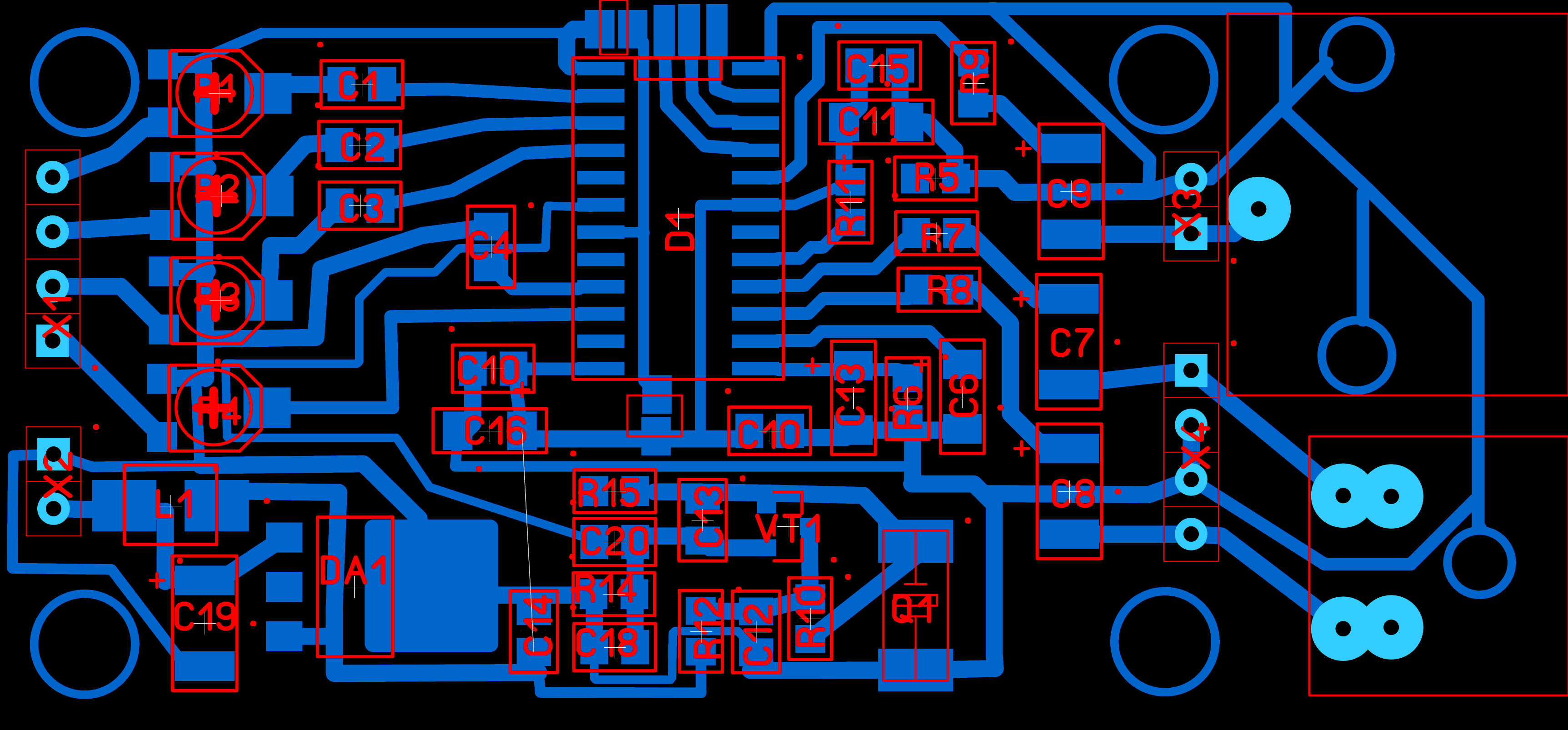 При использовании питания +9..15 не устанавливать дроссель 1, установить стабилизатор DA1 и конденсатор C19.