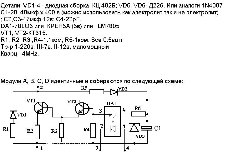 Теория и принцип работы схемы: В первую четверть периода сетевого напряжения энергия потребляется из сети тоесть, заряжается конденсатор С1, но заряжается через транзисторные ключи А и D которые управляется высокочастотными импульсами то-есть энергия на зарядку потребляется импульсами повышенной частоты. Известно что счетчики в т.ч. электронные, т.к. они содержит индукционный датчик тока с магнитопроводом имеющим ограниченную проводимости по частоте, так и индукционные, т.к. содержат кроме магнитной еще и механическую часть измерительной системы, имеют очень большую отрицательную погрешность при протекание вч тока. Остается во вторую четверть периода, разрядить конденсатор в сеть без всяких импульсов, через теже ключи. Аналогично второй полупериод через другое плечо ключей С и В. Итак, к примеру: Потребили 2 кВт, счетчик учел 0.5 Вт, отдали в идеале 2 кВт, счетчик учел -2 кВт. Результат периода - индукционный счетчик крутится назад со скоростью -1.5 кВт, а электронный стоит до 1.5 кВт